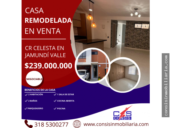 VENTA DE CASA REMODELADA EN CELESTA - JAMUNDÍ